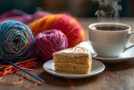 Everyone welcome to come and knit, sew, craft or just chat and enjoy a drink and a slice of cake.