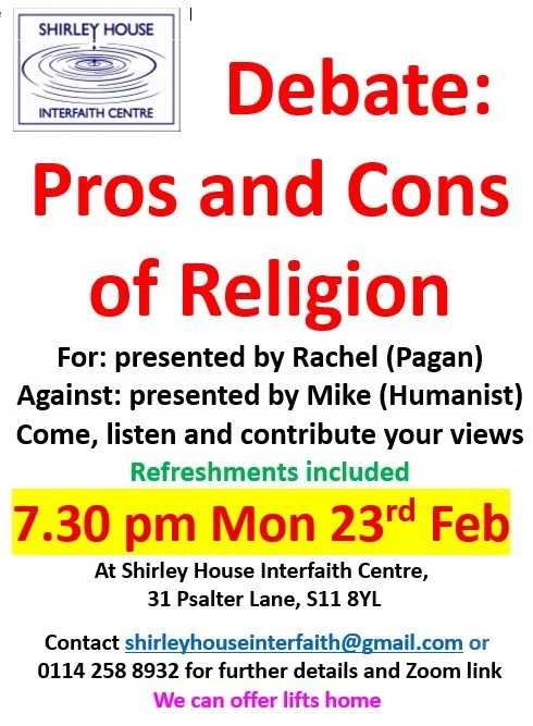 7.30 pm on Monday 23rd February in the Shirley House Interfaith Centre, 31 Psalter Lane, S11 8YL