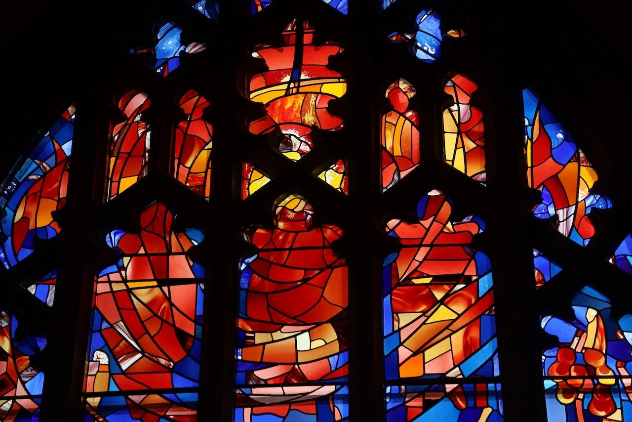 Look at the great glow at the heart of the window and think of the holiness of God as something powerful, burning and inextinguishable.